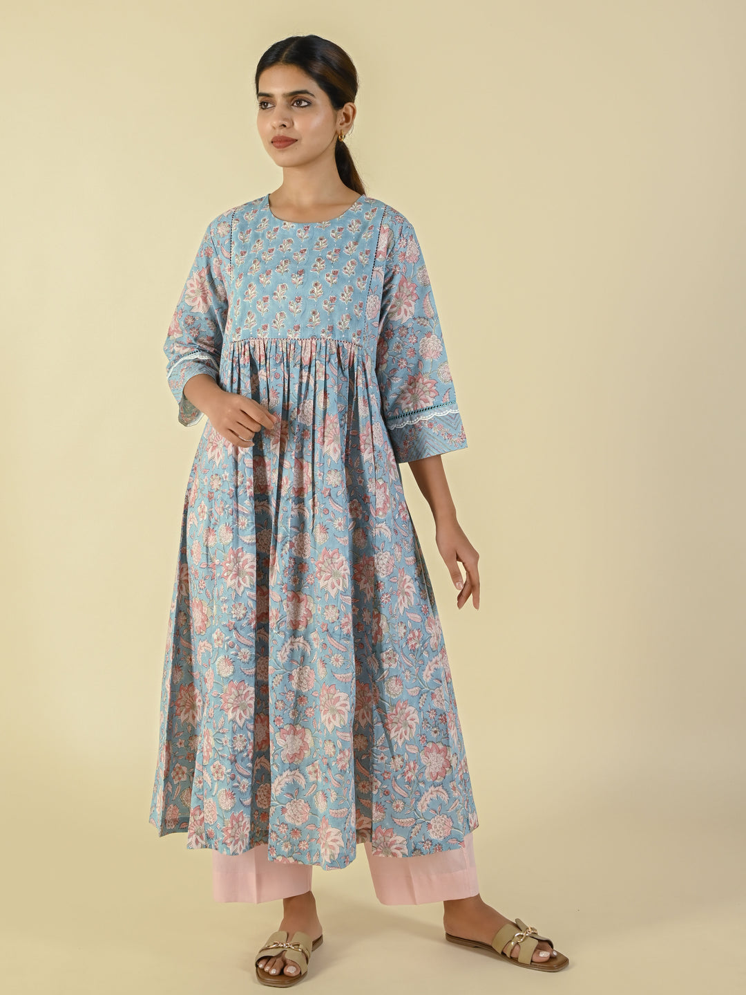 Misty blue hand block printed kota dress