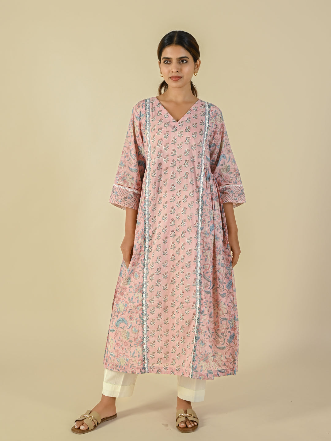 Soft pink cotton hand block printed tunic