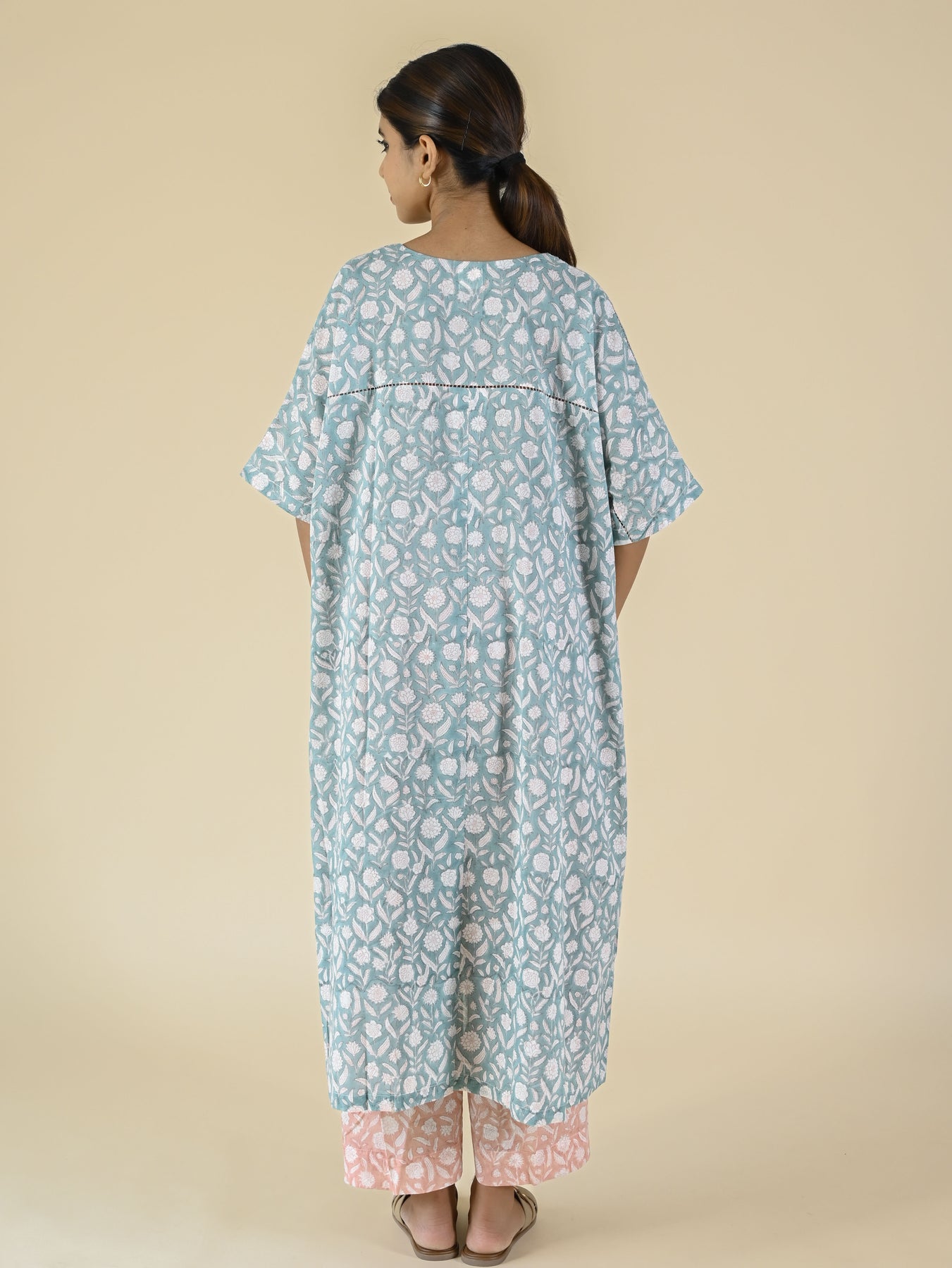 Pure cotton kurta set featuring soft floral prints, paired with a comfortable printed bottom. Lightweight and breathable, making it perfect for everyday wear. An easy, elegant choice for effortless daily styling.